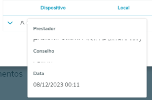 , é exibido o nome e número do conselho profissional responsável, a data e hora do registro de um item.