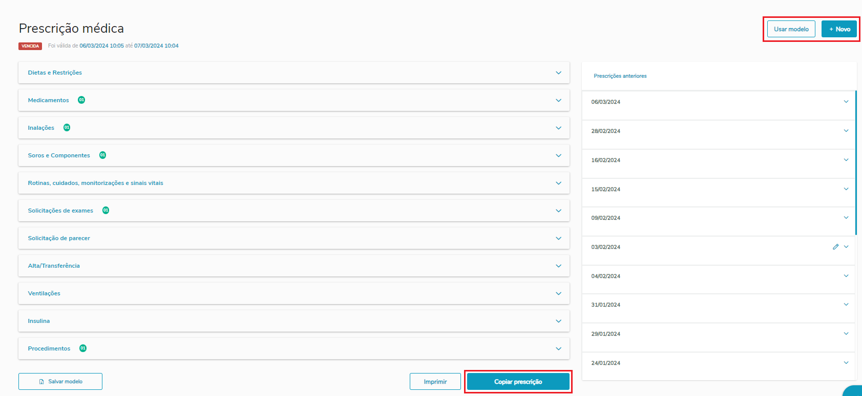 Ao realizar a cópia, será gerada uma nova prescrição, a partir da anteriormente selecionada. A mesma estará em forma de rascunho e dependerá da liberação do usuário para estar vigente. Image Added