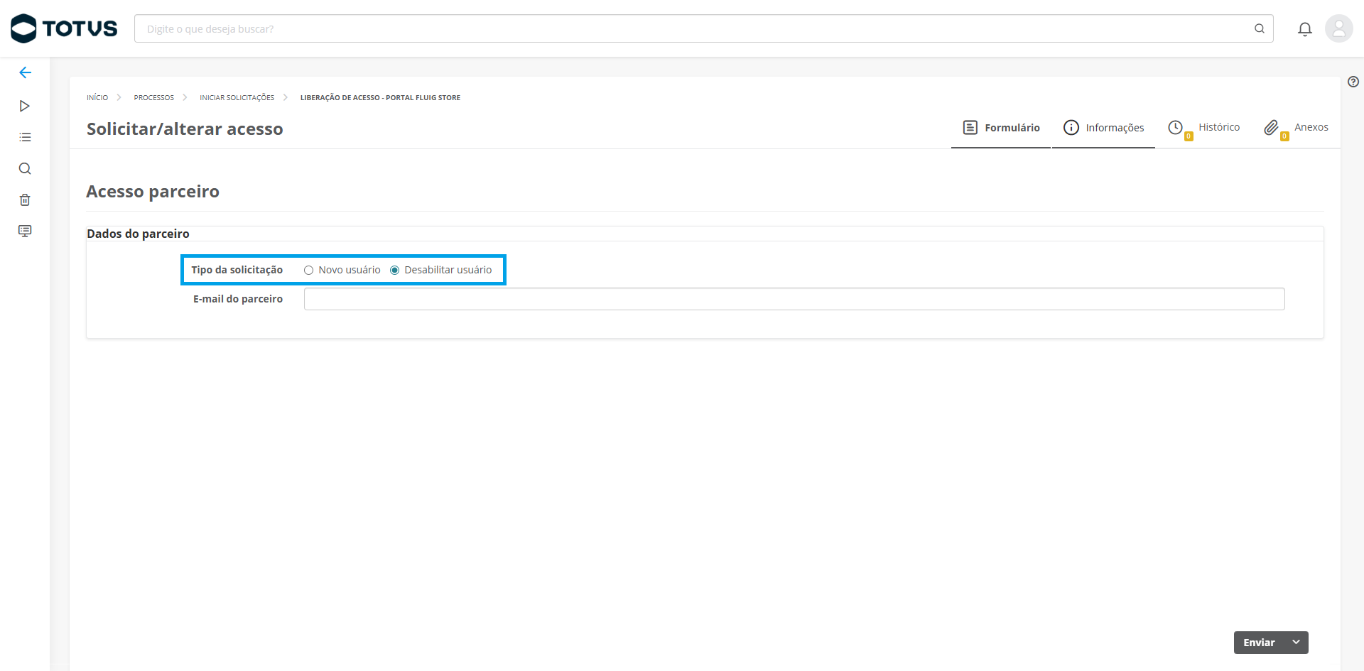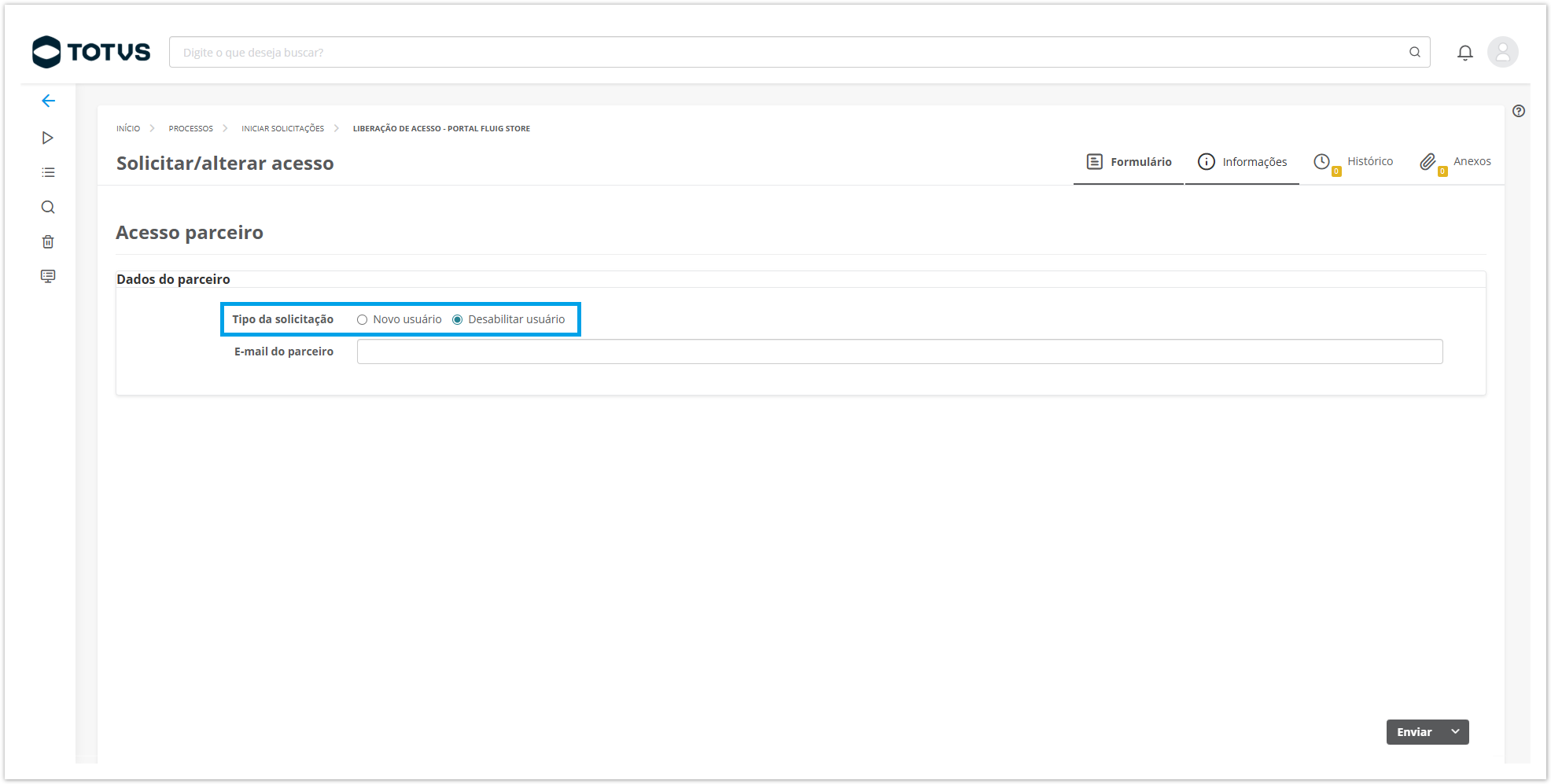 Solicitação de acesso: novo usuário parceiro
