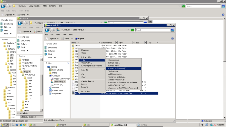 Copiar a pasta EXE, que está dentro da pasta e que foi descompactada para o caminho C:\RMS\RMSSRV\.
