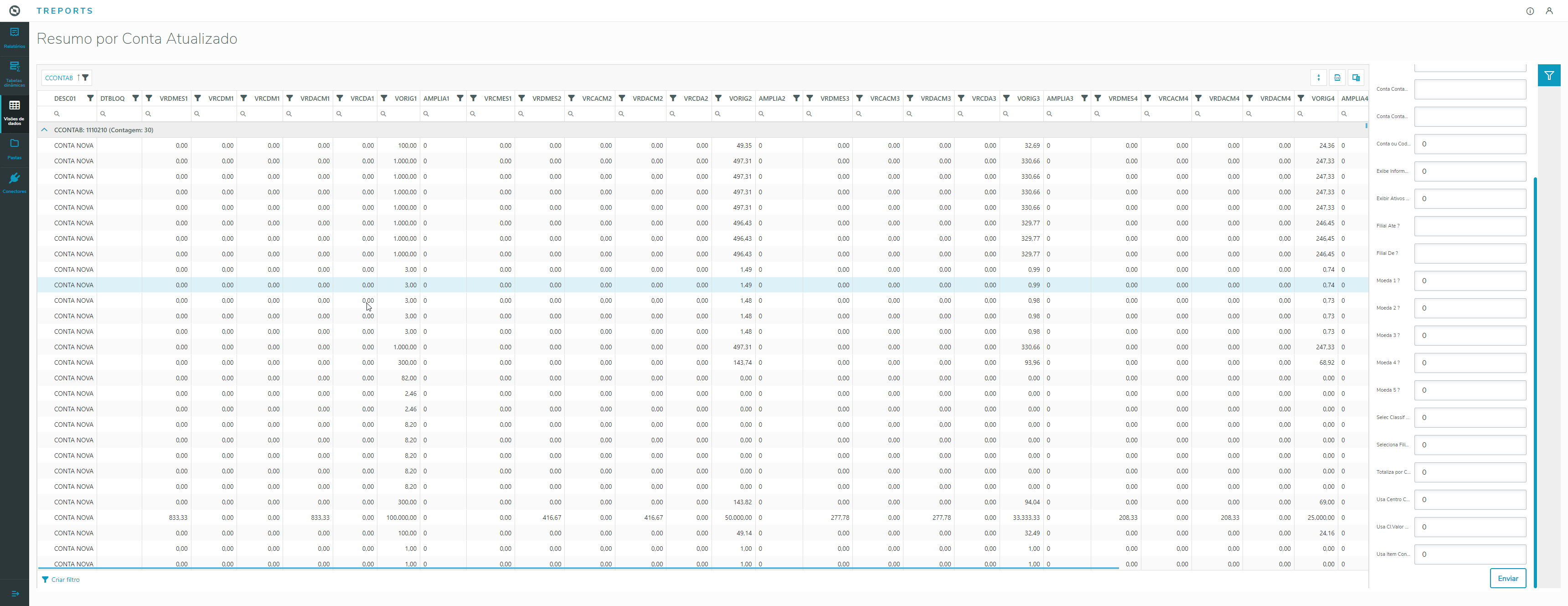 Esse relatório tem como objetivo exibir a Listagem da Visão Gerencial da filial logadao Resumo por Conta.