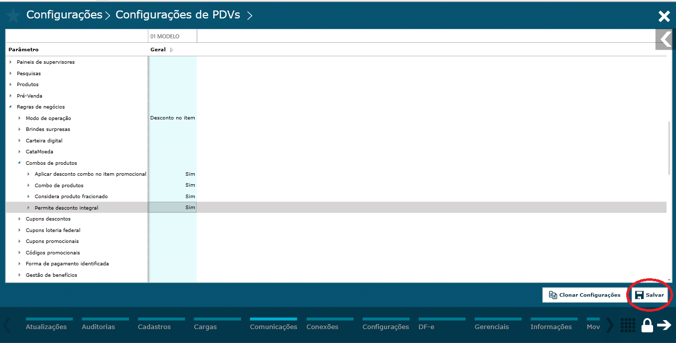 Dica: Para que a regra combo funcione no PDV deve ser ativado o parâmetro abaixo;
