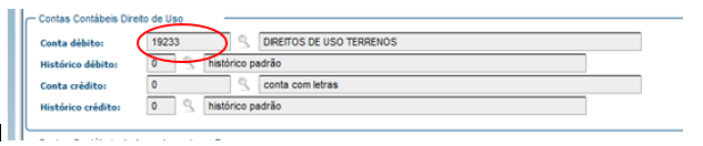 - Nestes campos normalmente serão informadas as contas:Conta débito: conta de arrendamentos a pagar (Passivo)