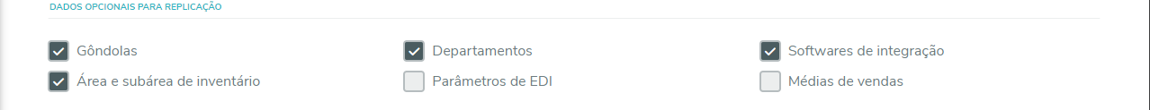 Indicam quais cadastros opcionais serão replicados: