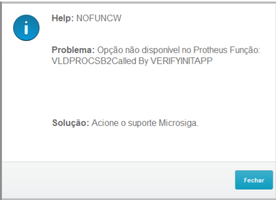 Verifique na FAQ todas as instruções e ajustes necessários: SIGAEST - InterFunctionCall: cannot find function VLDPROCSB2 in AppMap on VERIFYINITAPP