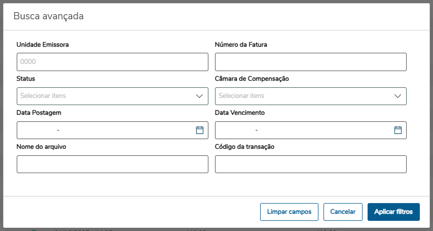 | Busca Avançada | Realizar a buscar das faturas informando filtros. |