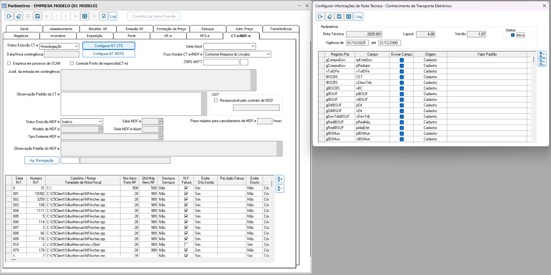 Caminho: Modulo Parâmetros > Parâmetros > Empresa > Aba CT-e/MDF-e