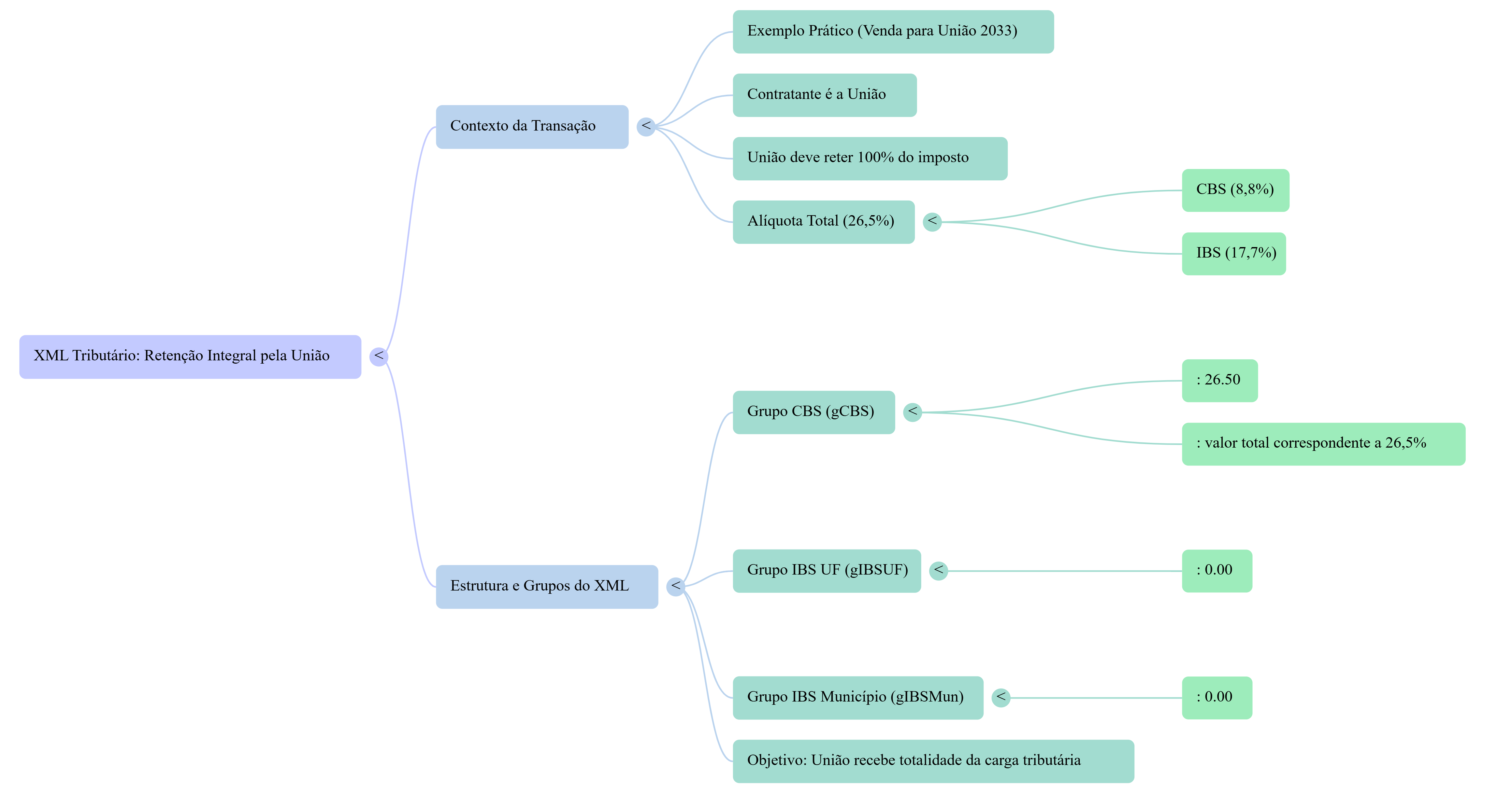 Essa lógica deve ser aplicada em todas as esferas (federal, estadual e municipal) respeitando a origem do ente comprador. Essa exigência fica clara pela Regra de Validação B32-10, que rejeita qualquer XML em que:o tpEnteGov indique, por exemplo, União,mas as alíquotas de pIBSUF ou pIBSMun apareçam maiores que zero. Assim, o próprio XML deve refletir a redistribuição — não há campo oculto, indicador interno ou cálculo apenas “no motor”. Tudo deve estar explícito nas tags principais (gIBSUF, gIBSMun, gCBS). Abaixo, exemplo com alíquotas hipotéticas para efeitos didáticos: