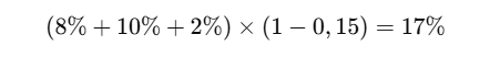Alíquota efetiva = Alíquota nominal × (1 − pRedAliq) × (1 − pRedutor)