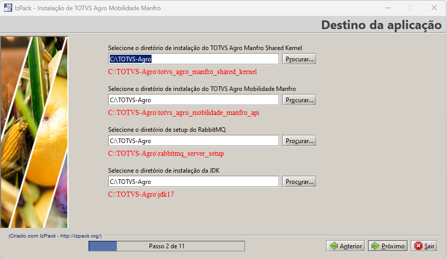 Em seguida, será exibida a tela para definições dos diretórios onde os programas serão instalados.