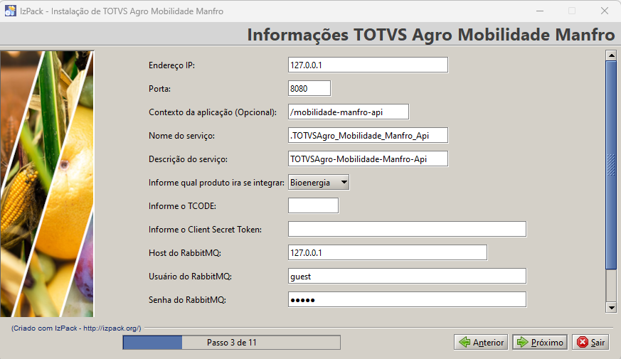 Na próxima etapa, serão configurados os serviços necessários para a aplicação TOTVS Agro Mobilidade Manfro, se foi selecionado para instalação.
