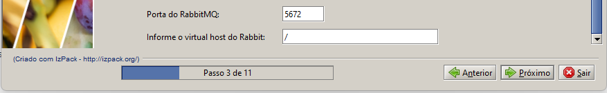• Senha do RabbitMQ:  Forneça a senha que vai conectar no RabbitMQ;