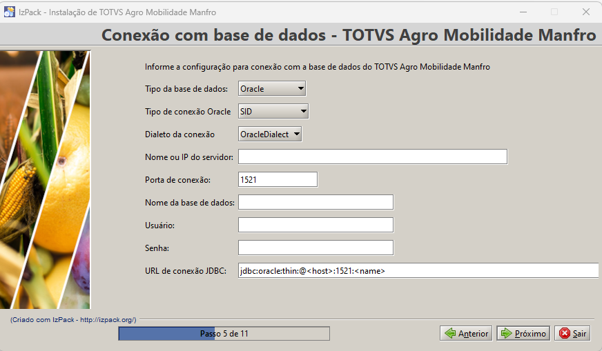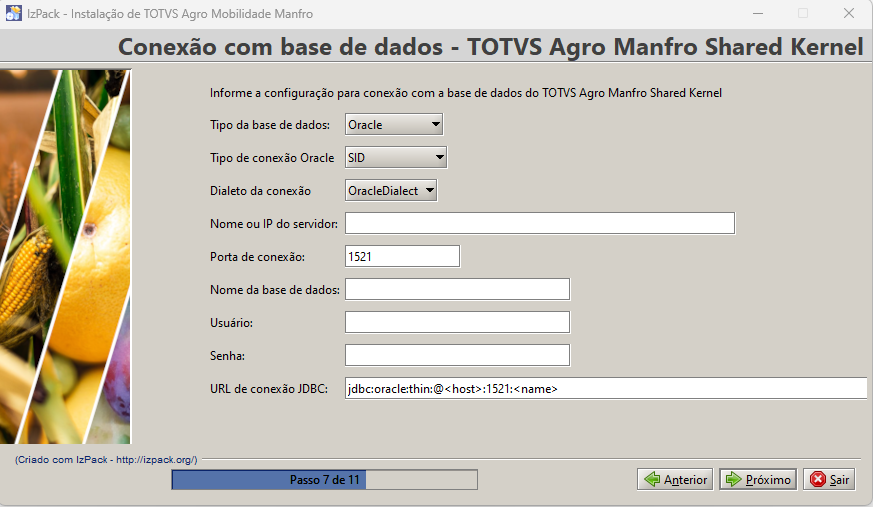 Preencha os campos conforme as informações do ambiente onde o sistema será executado: