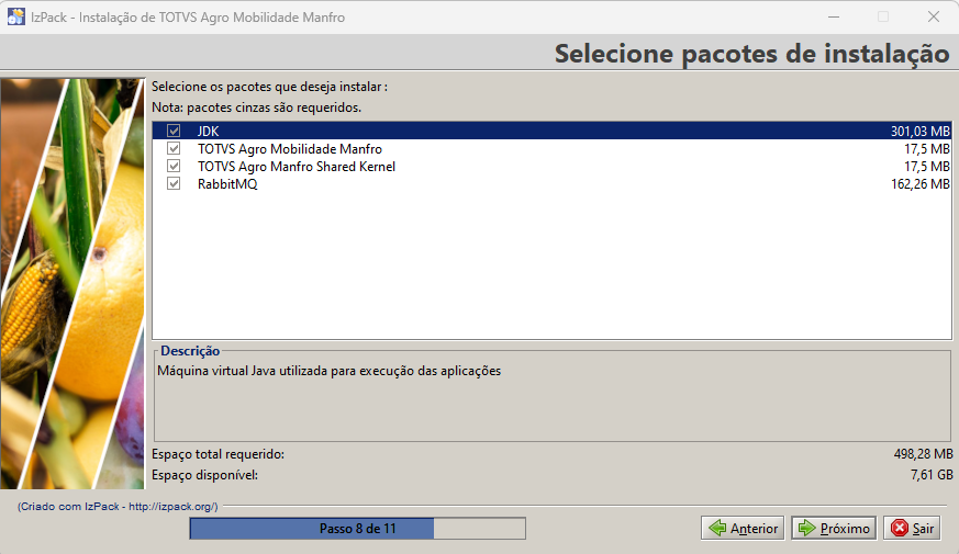 Os seguintes pacotes já vêm selecionados por padrão, sendo obrigatórios para o funcionamento do sistema: