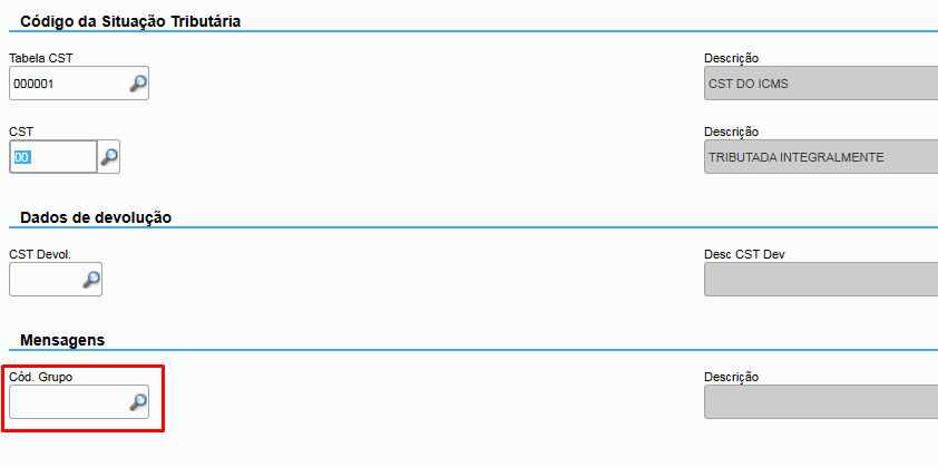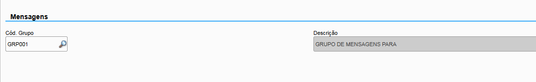 Mais abaixo, na seção Mensagens haverá o campo Cód. Grupo para que façamos a vinculação.