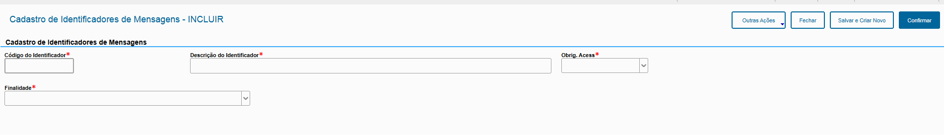 Após acessar a rotina de Cadastro de Mensagem e clicar em incluir teremos a seguinte tela: