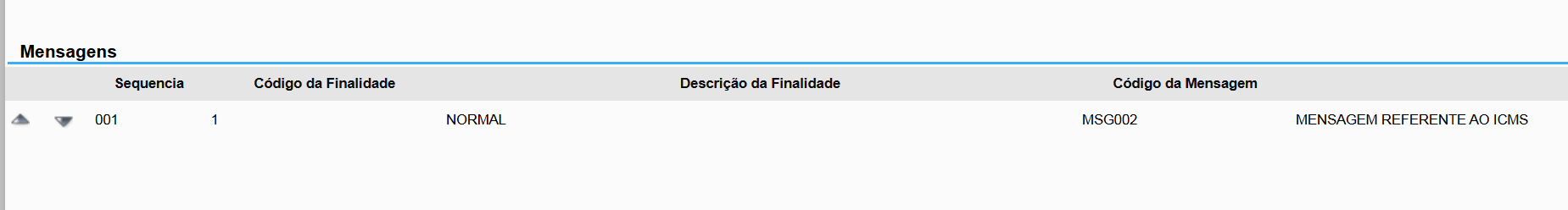 No exemplo acima definimos que a mensagem MSG002 deve ser considerada em casos de notas fiscais normais.
