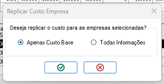 Após o usuário definir a opção desejada na tela "Replicar Custo Empresa", o sistema iniciará a replicação dos dados para todas as empresas selecionadas.