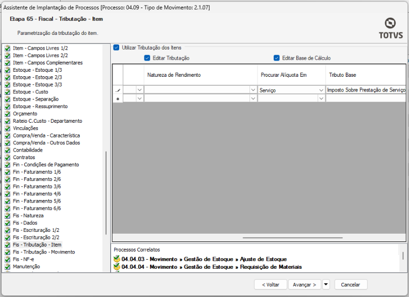 Quando parametrizado corretamente, ao criar um movimento 2.1.XX, o sistema passará a zerar automaticamente o valor da alíquota do ISS: