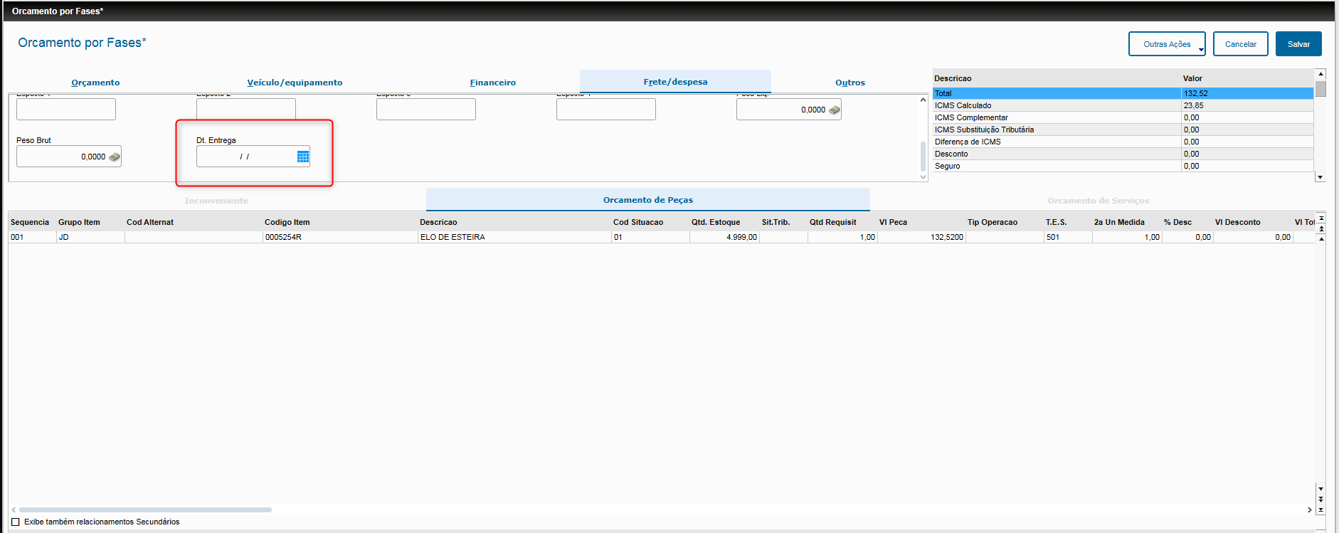 os campos “Dt. Entrega” passam a ser obrigatórios, em atendimento à exigência fiscal de informação da Data prevista de entrega.