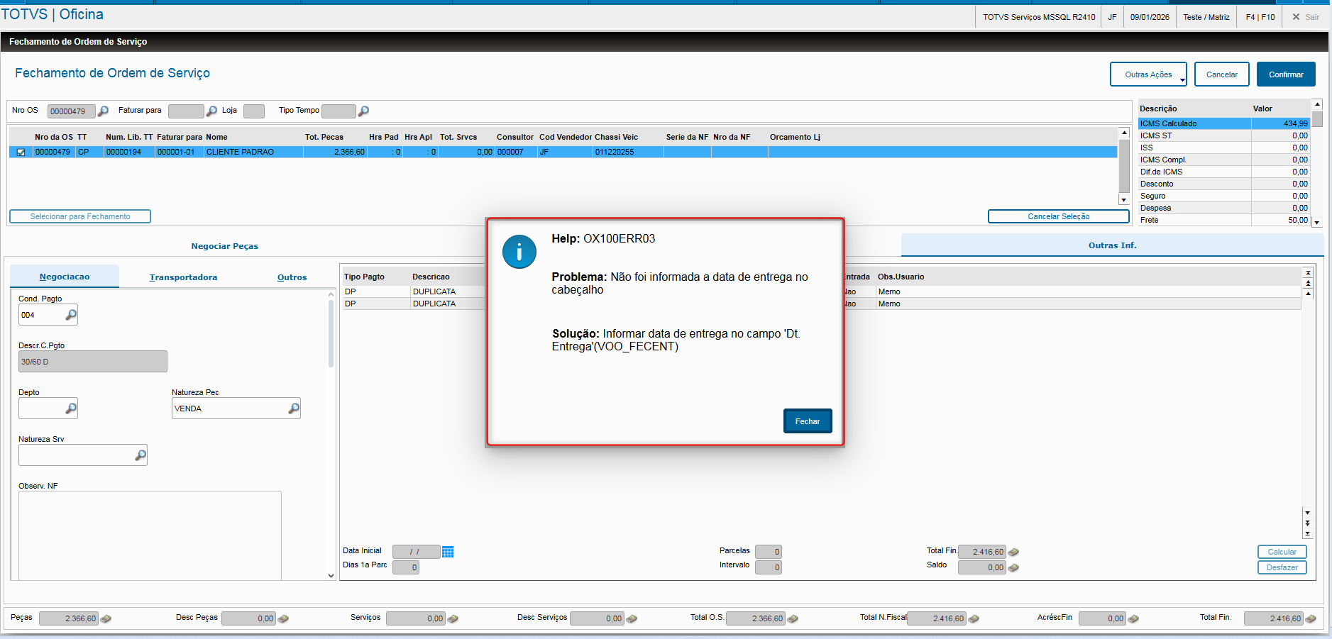 Fechamento de OS (OFIXA100)