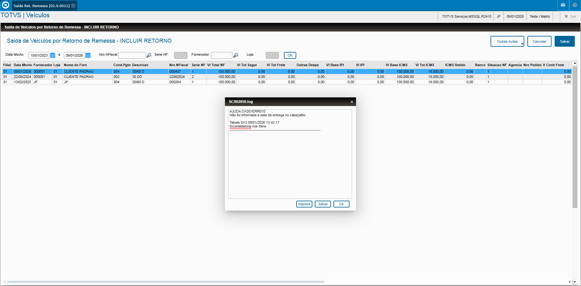 Saída por Retorno de Remessa (VEIXA016)