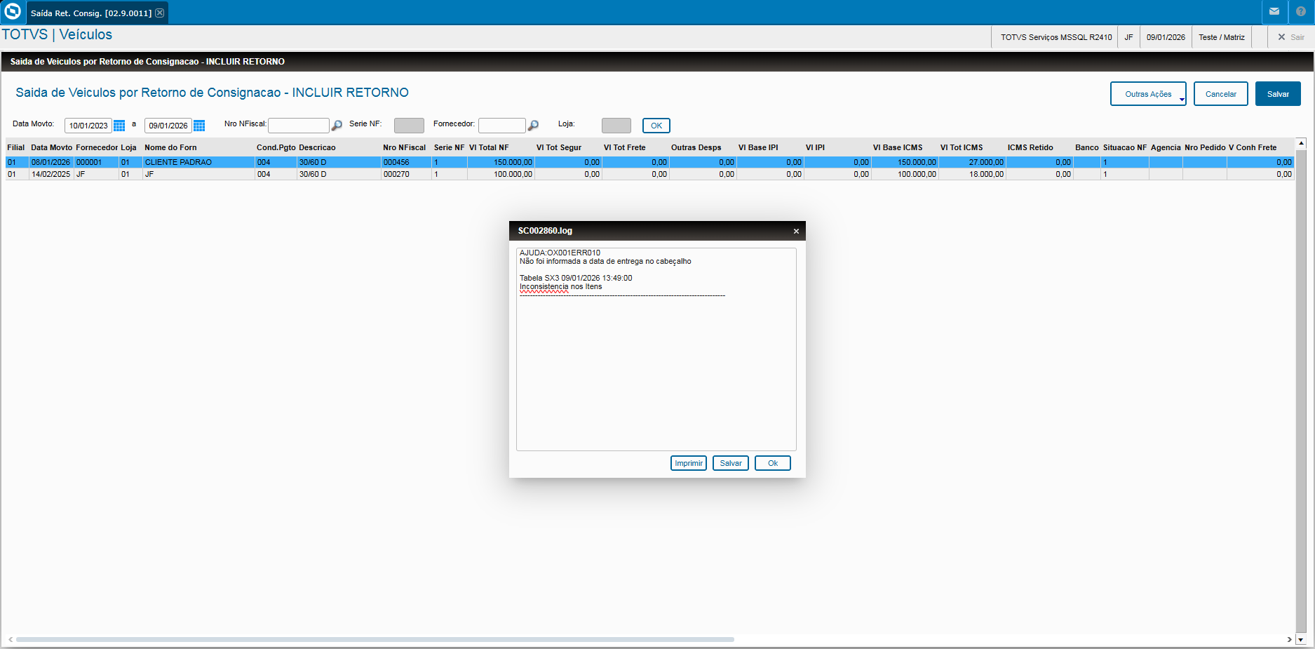 Saída por Retorno de Consignação (VEIXA017)