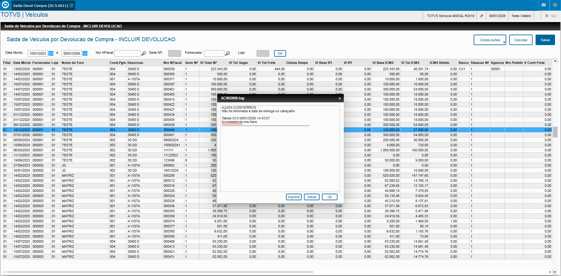 Saída por Devolução de Compra (VEIXA012)
