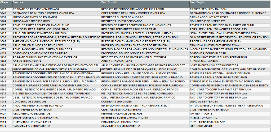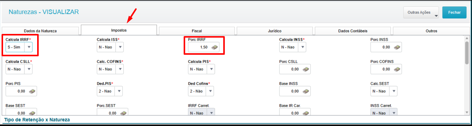 Para que el sistema efectúe el cálculo del IRRF para proveedores del tipo persona física de acuerdo con el porcentaje informado en la modalidad financiera (SED), es decir, sin aplicar el cálculo a través de la tabla progresiva, es necesario configurar los siguientes registros: