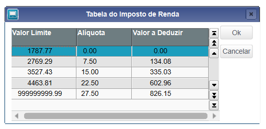Título A con valor de R$ 600,00 y título B con el valor de R$ 4.000,00. En este caso en la baja del título A, el sistema no retendrá el impuesto de IR, porque este valor no alcanza el mínimo para retención (Tabla progresiva). Al dar baja al título B, el sistema calculará el impuesto del IR con la base R$ 4.600,00 (R$ 600,00 + R$ 4.000,00) y con esto tendremos el siguiente cálculo: