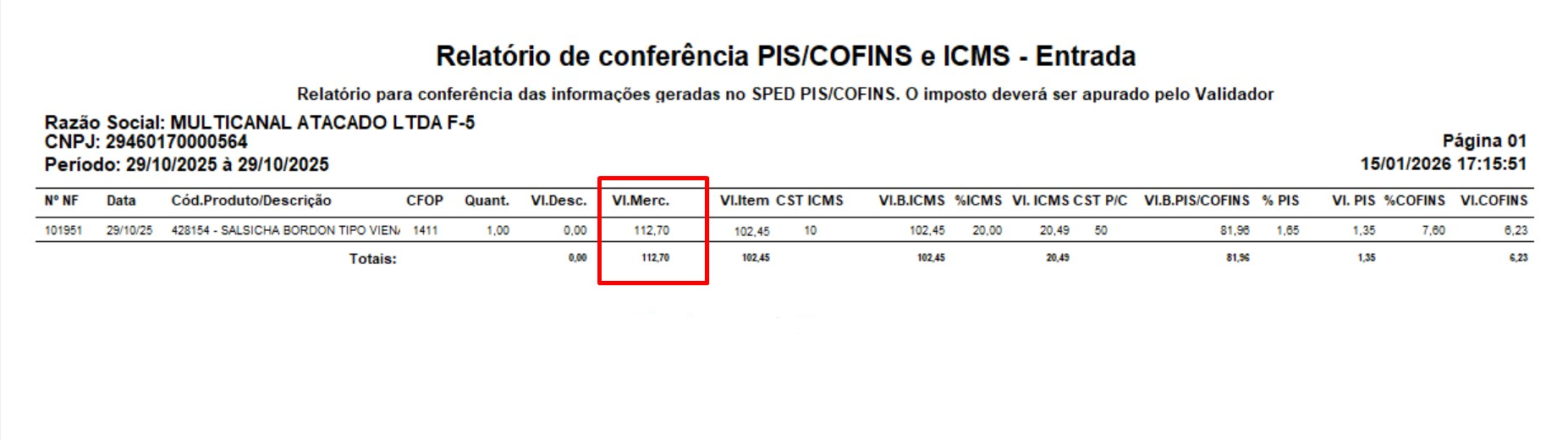 Ao gerar o Relatório 13 na Rotina 1096, o valor da mercadoria está sendo calculado com a soma do ICMS ST. No entanto, o campo PUNITCONT já é gravado considerando esse valor somado, o que resulta em uma divergência significativa entre o valor da mercadoria e o valor do item.