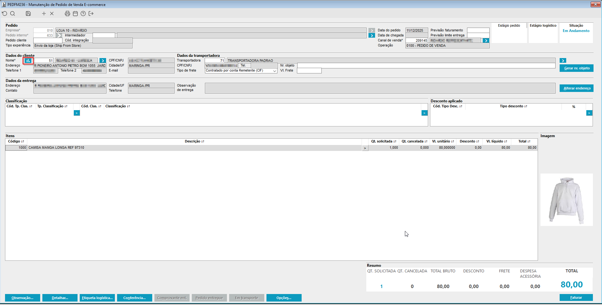 | Módulo: | Pedido de venda. |