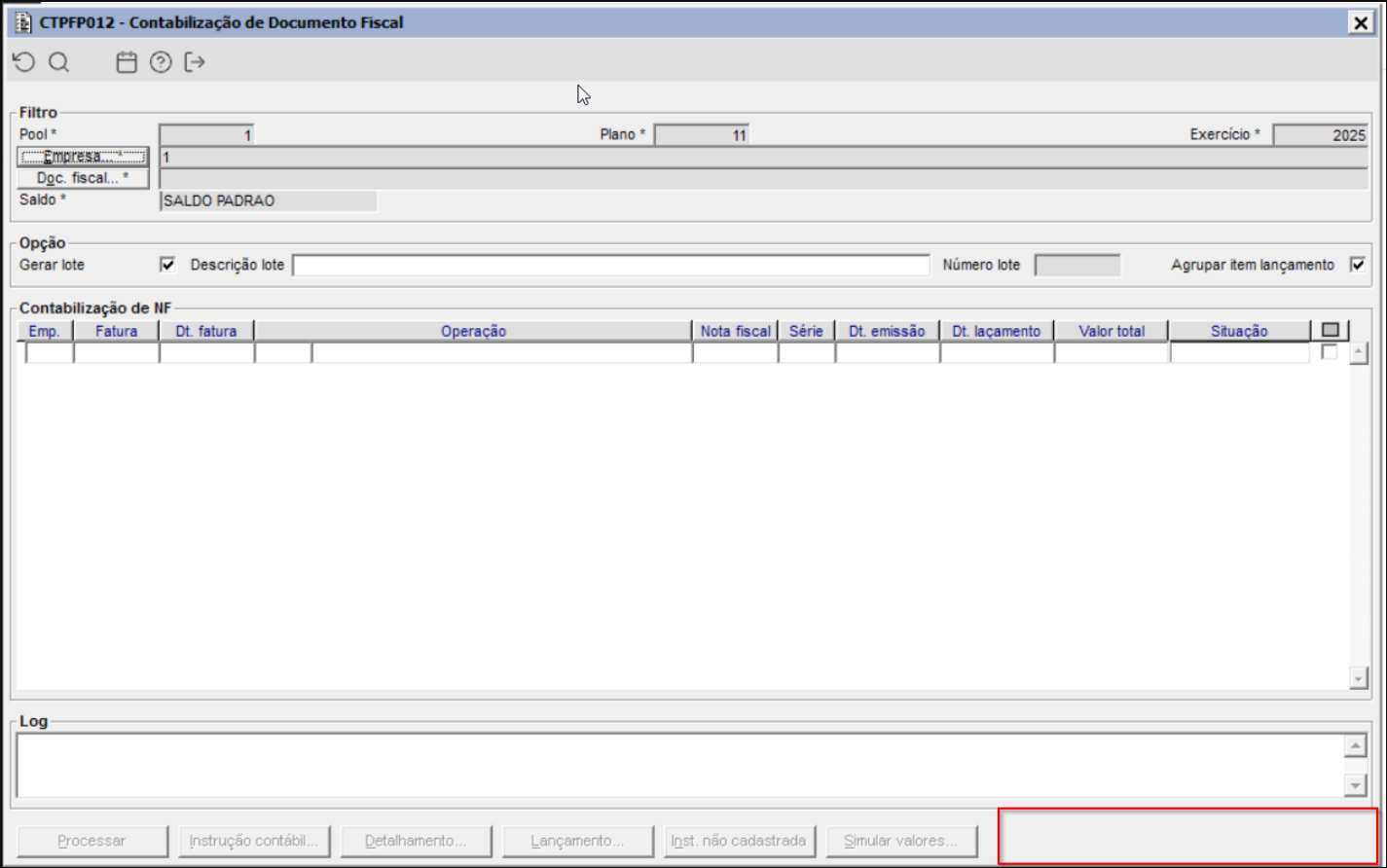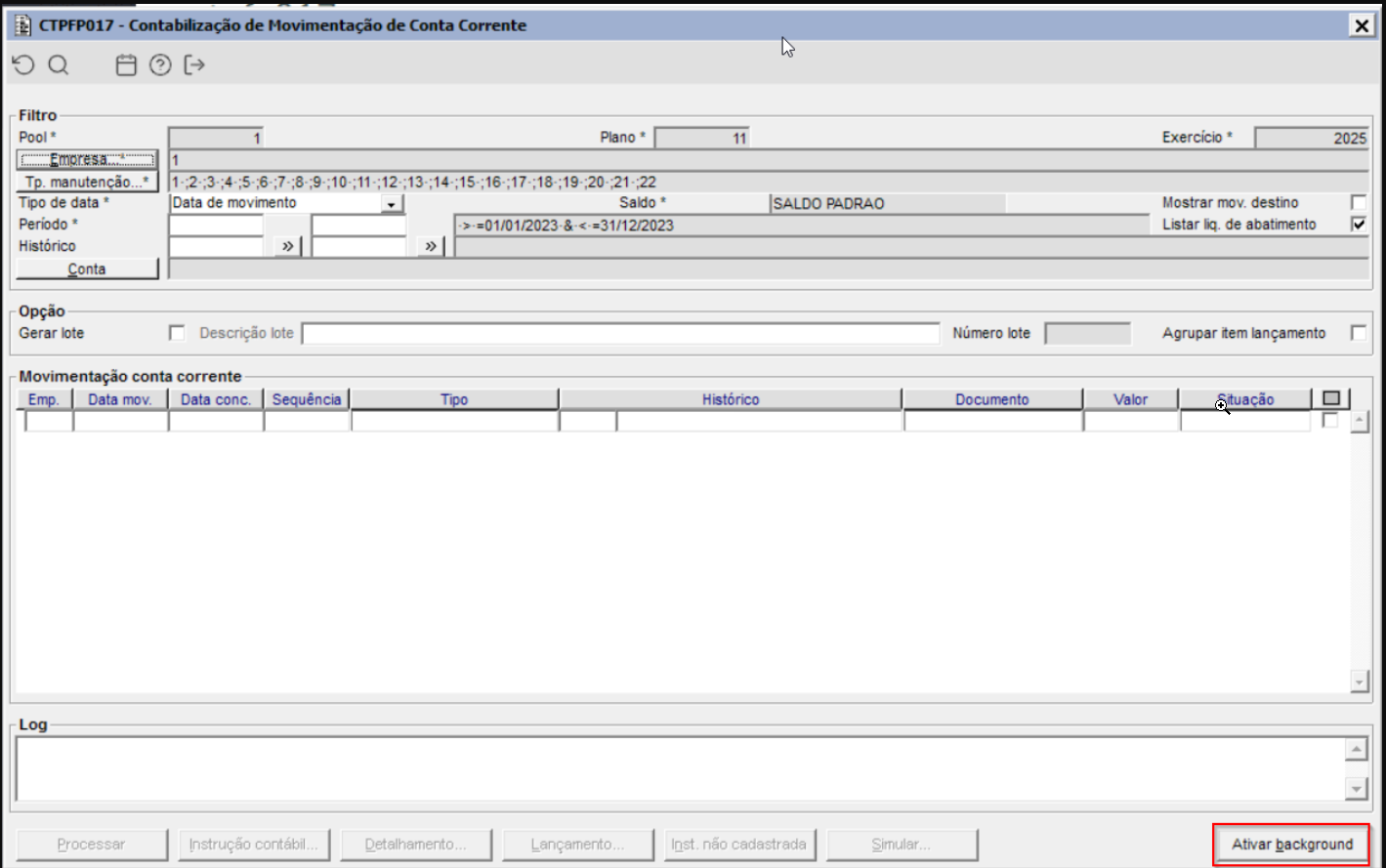 Imagem 4 – Demonstra que, após o início do processamento em background, o botão deixa de ficar visível para acionamento. Essa regra se aplica a todas as empresas do pool contábil.