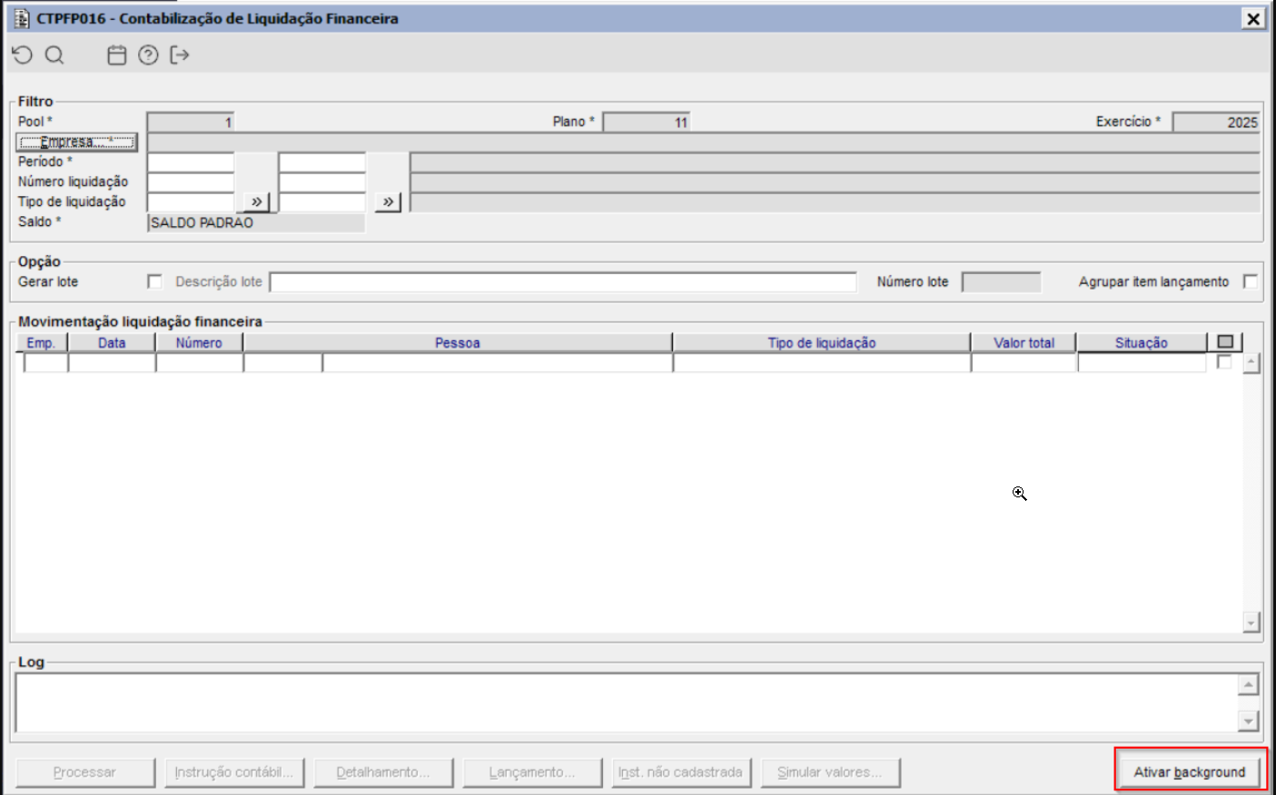 Imagem 1 – Demonstra a implementação do novo botão “Ativar background” no componente CTPFP012.
