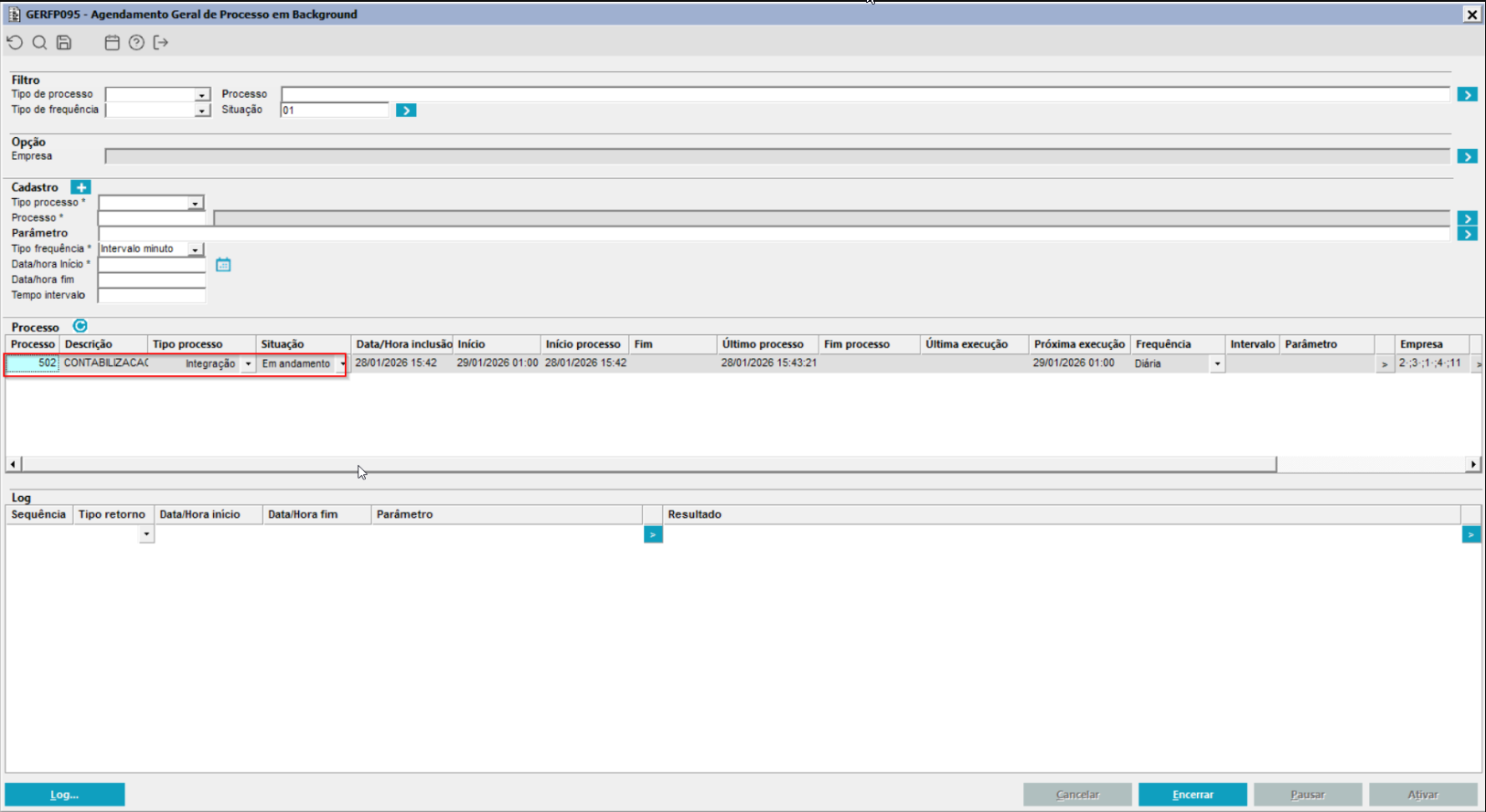 Imagem 2 – Demonstra que, ao clicar no botão, é gerado o processo 500 para a contabilização automática em background.