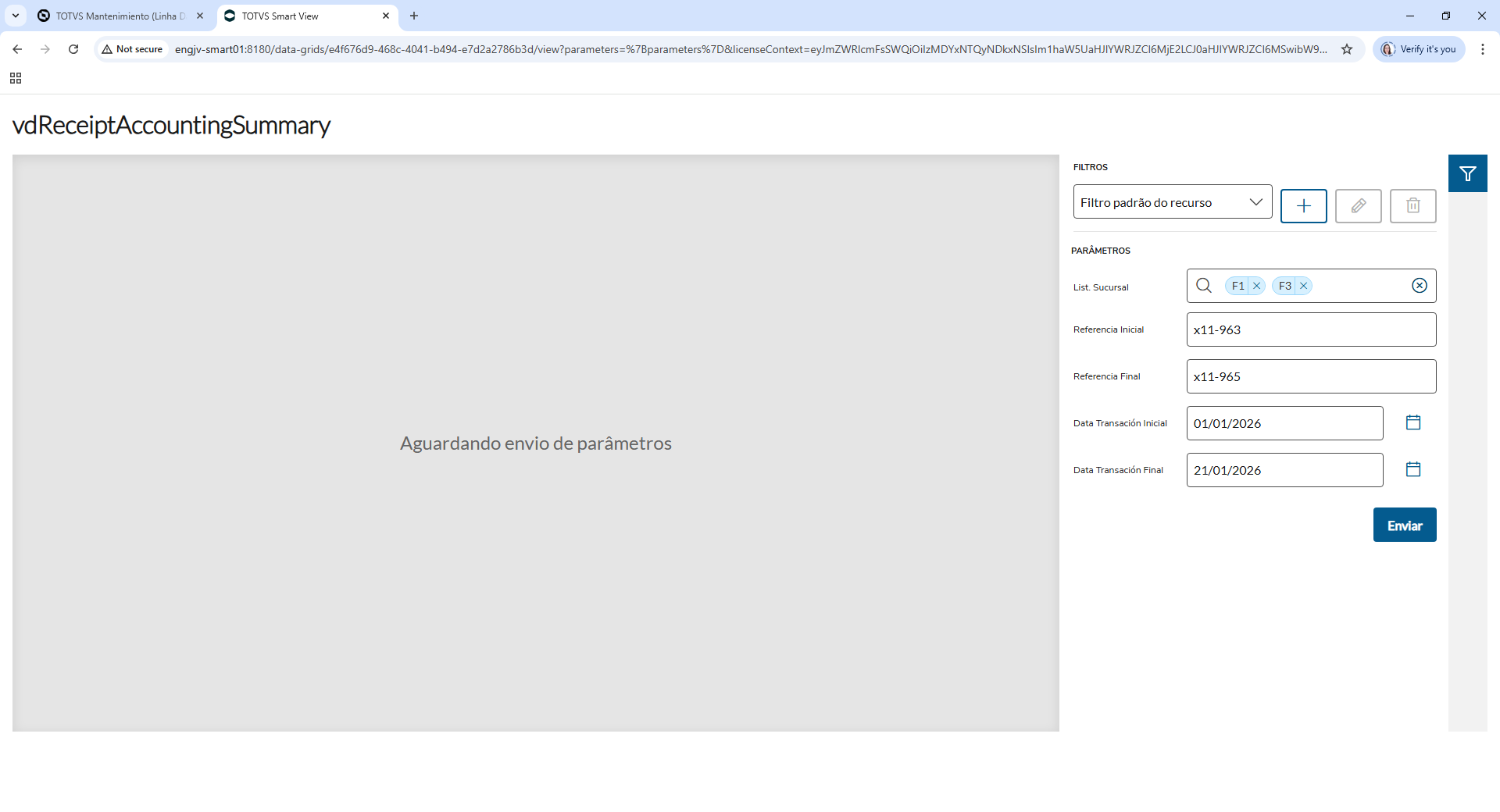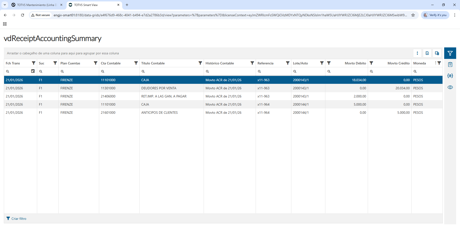Después de la importación del reporte al Sistema, su visualización puede realizarse directamente por el menú: vdReceiptAccountingSummary