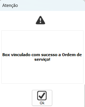 O sistema confirmará: "Box vinculado com sucesso à Ordem de Serviço!".