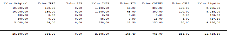 La columna "Valor Neto" presentará el valor del título con la deducción de PIS/COFINS/CSLL únicamente cuando ya se haya efectuado la retención de estos impuestos.