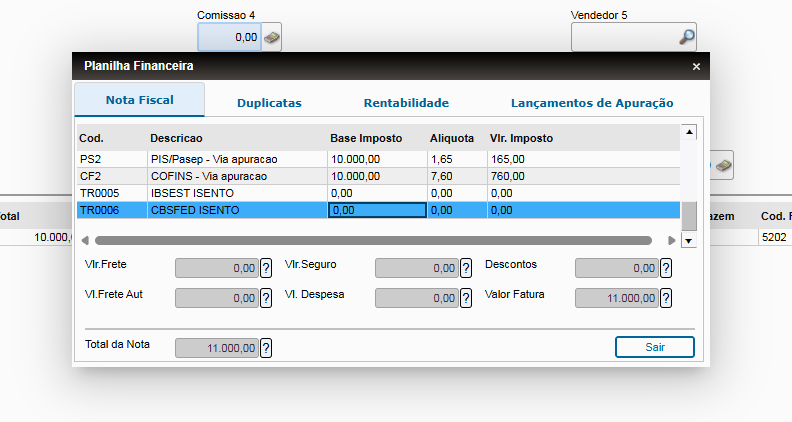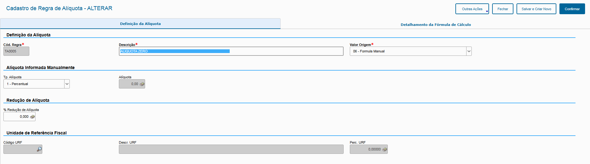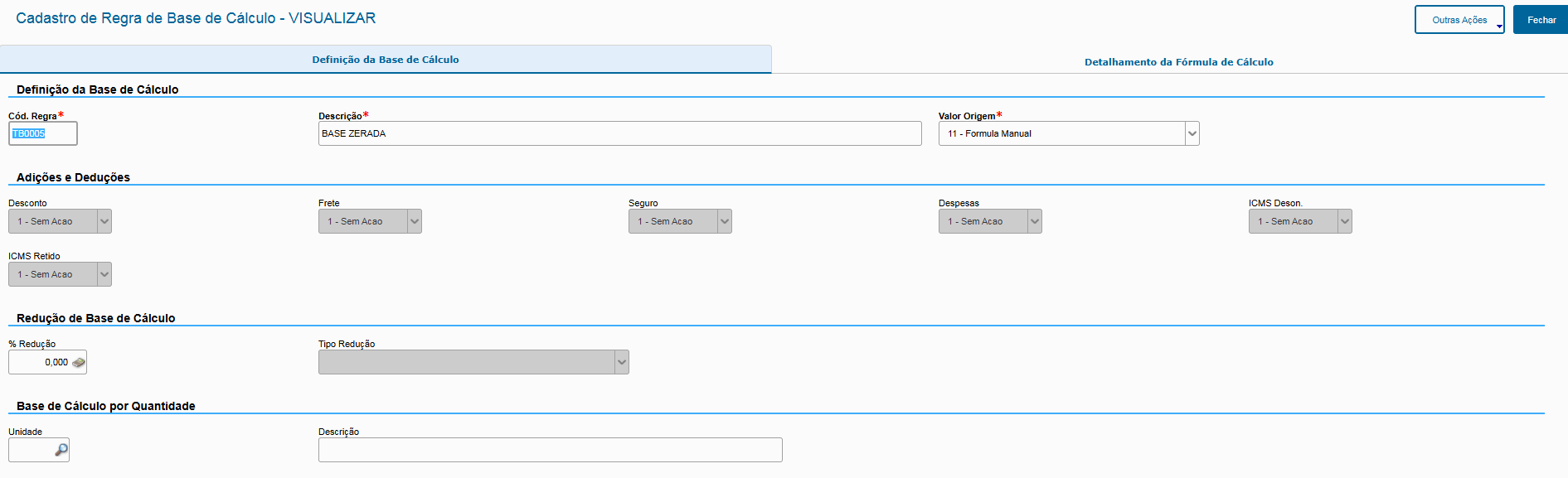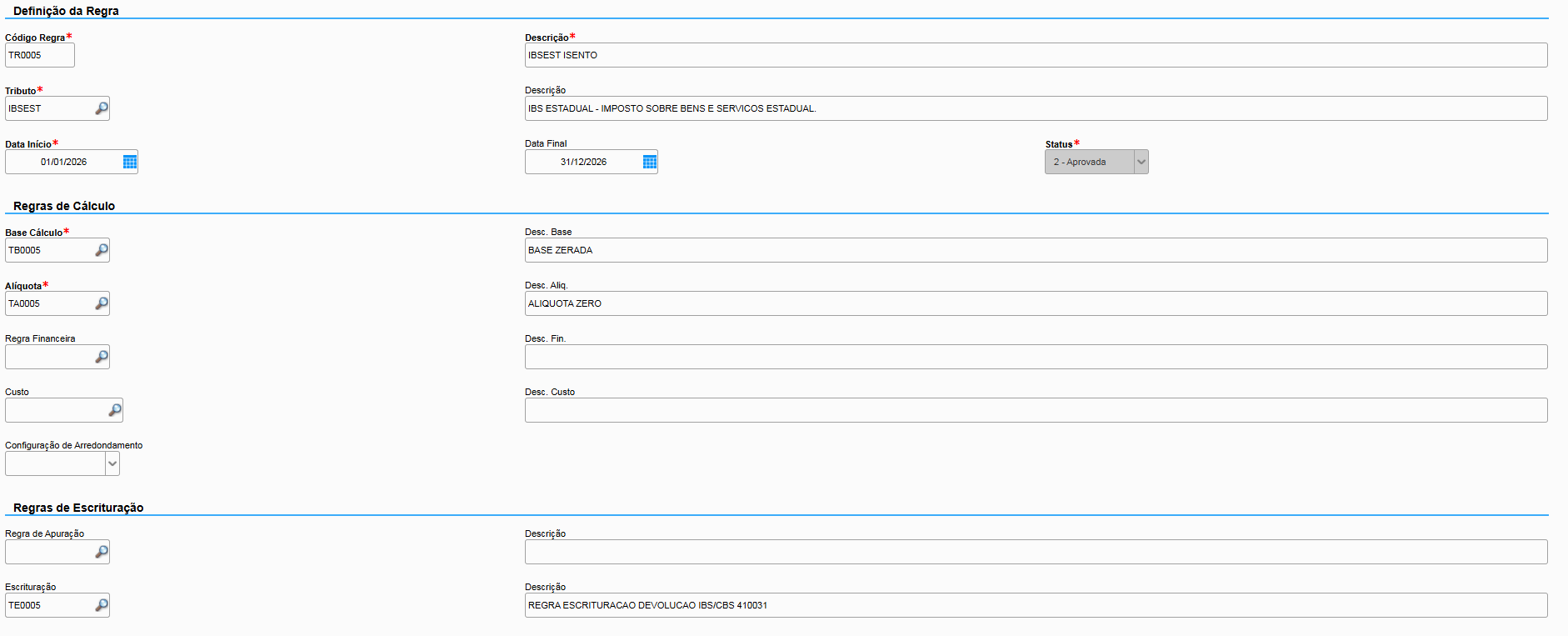 O exemplo supracitado serve exclusivamente como parâmetro de referência para o funcionamento adequado da funcionalidade, sendo imprescindível que seja adaptado à realidade operacional da empresa.