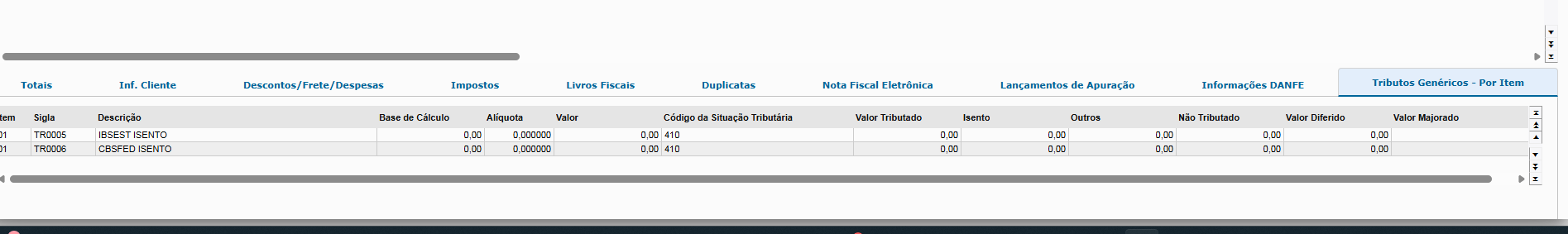- Caso sejam informados, devem constar com cClassTrib 410031, CST 410 e valores zerados.