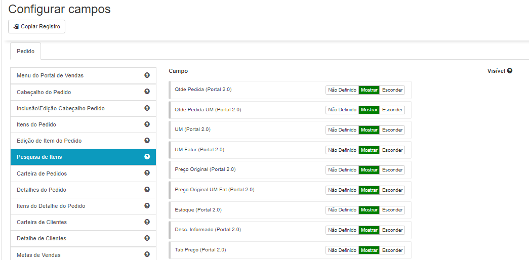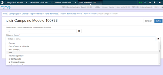 Al utilizar un modelo de ítems, la regla es la misma que ya existe en la Configuración de Clientes y Representantes del Portal de Ventas, a través del registro Modelos del Portal de Ventas. Para adicionar un modelo de ítem es necesario informar la secuencia (Ej: (10, 20 o 1, 2, 3, y así sucesivamente). Esta configuración carga la información de un modelo de ítem y todos los campos necesarios. Al utilizar este modelo en el Portal 2.0, se habilita una pestaña llamada “Ítems del Modelo”, donde se cargan los ítems definidos en el modelo y desde donde será posible adicionarlos al pedido.