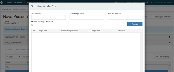 La simulación de flete lanzada en la Release 12.1.25 también forma parte del Portal 2.0. En la Configuración de Clientes y Representantes del Portal de Ventas, dentro de Campos del Portal de Ventas (edición Inclusión/Edición del Encabezado del Pedido), al seleccionar la opción “Botón Simulación de Flete (Portal 2.0)”, la simulación queda disponible en la capa del pedido. Una vez calculado el pedido en el portal, es posible simular el flete, lo que ayuda al Representante a elegir la mejor ruta para el envío de la mercadería.