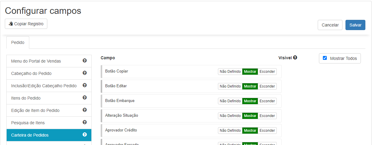 Ahora, en la Configuración de Clientes y Representantes en el Portal de Ventas, en campos del Portal de Ventas, en edición Inclusión\Edición del encabezado del pedido, al seleccionar para mostrar la opción “Botón Cancelar, Cuando Pedido Liberado (Portal 2.0)”, el usuario tendrá habilitada la opción de cancelación incluso después de que el pedido se haya liberado.