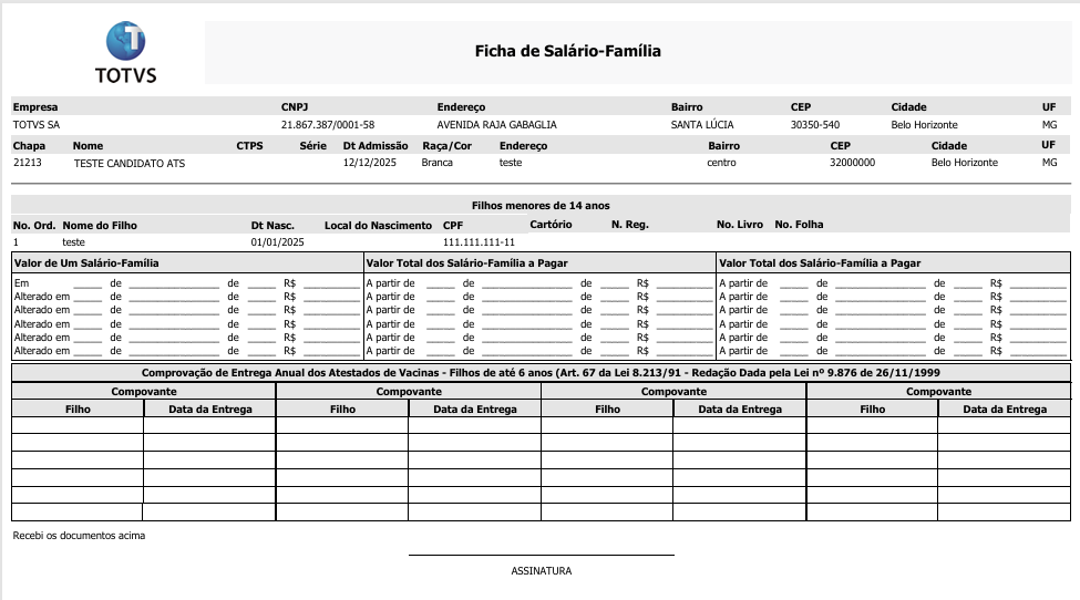 Relatório para emitir lista dos dependentes de salário-família. Nesse relatório temos os seguintes filtros disponíveis: