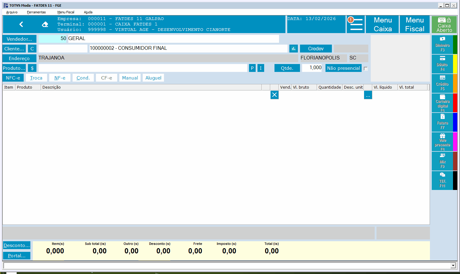 Agora quando for perguntado se deseja informar o CPF sendo próprio ou de terceiro, o sistema na validação da regra do parâmetro corporativo DS_LST_VL_OBRIGA_CPF_NFCE não irá mais dar a mensagem de validação, pois foi informado o CPF/CNPJ no início da venda. A tela para informar o CPF/CNPJ será somente chamado conforme as regras atuais de UF e limite de valor mas caso não tenha sido informado o CPF/CNPJ no início da venda.