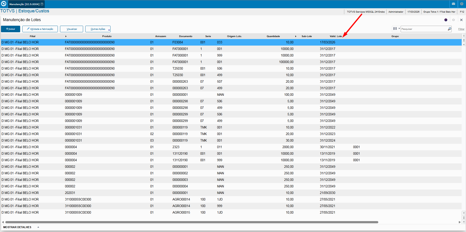 Caso o cliente queria que o campo em questão seja atualizado, será necessário realizar a implementação do Ponto de Entrada, PE MT390DTV Data de Validade. Pois através dele é possível realizar este procedimento.