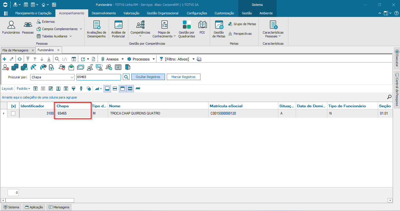 | Função: | Integração RM X Quírons - Mudança da Chapa |