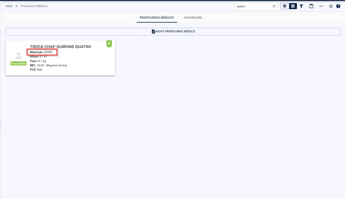 Após o envio, o colaborador assumiu a nova matrícula na Quírons.