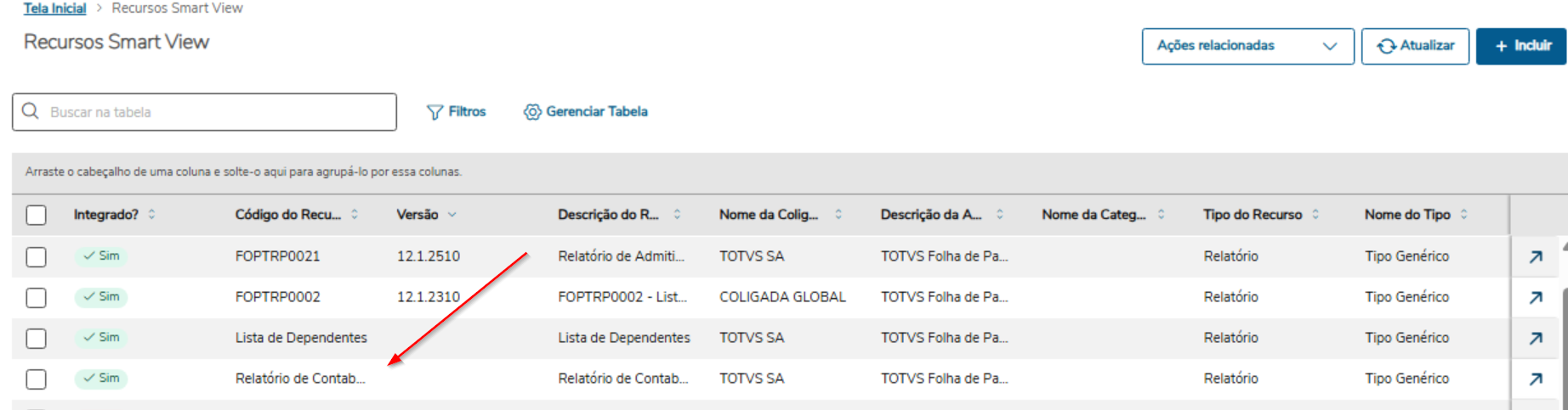 A visualização do relatório será conforme o filtro inserido via visão do Smart View, sendo esse filtro incluído pelo usuário.