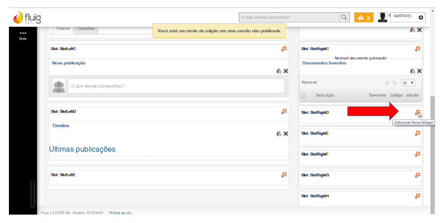Na página seguinte escolha um Slot e clique em 'Adicionar Nova Widget'